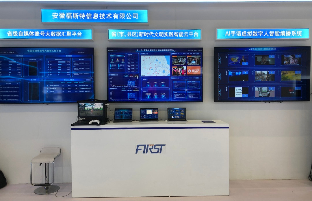 安徽福斯特信息技術(shù)有限公司此次應(yīng)邀參展,以廣電媒體發(fā)展為亮點(diǎn),集中展示大數(shù)據(jù)、人工智能呈現(xiàn)了AI-VLOG視頻智能合成系統(tǒng)+AI手語虛擬數(shù)字人智能編播系統(tǒng)+省級自媒體賬號大數(shù)據(jù)匯聚平臺(tái)+省(市、縣區(qū))新時(shí)代文明實(shí)踐智能云平臺(tái)技術(shù)。